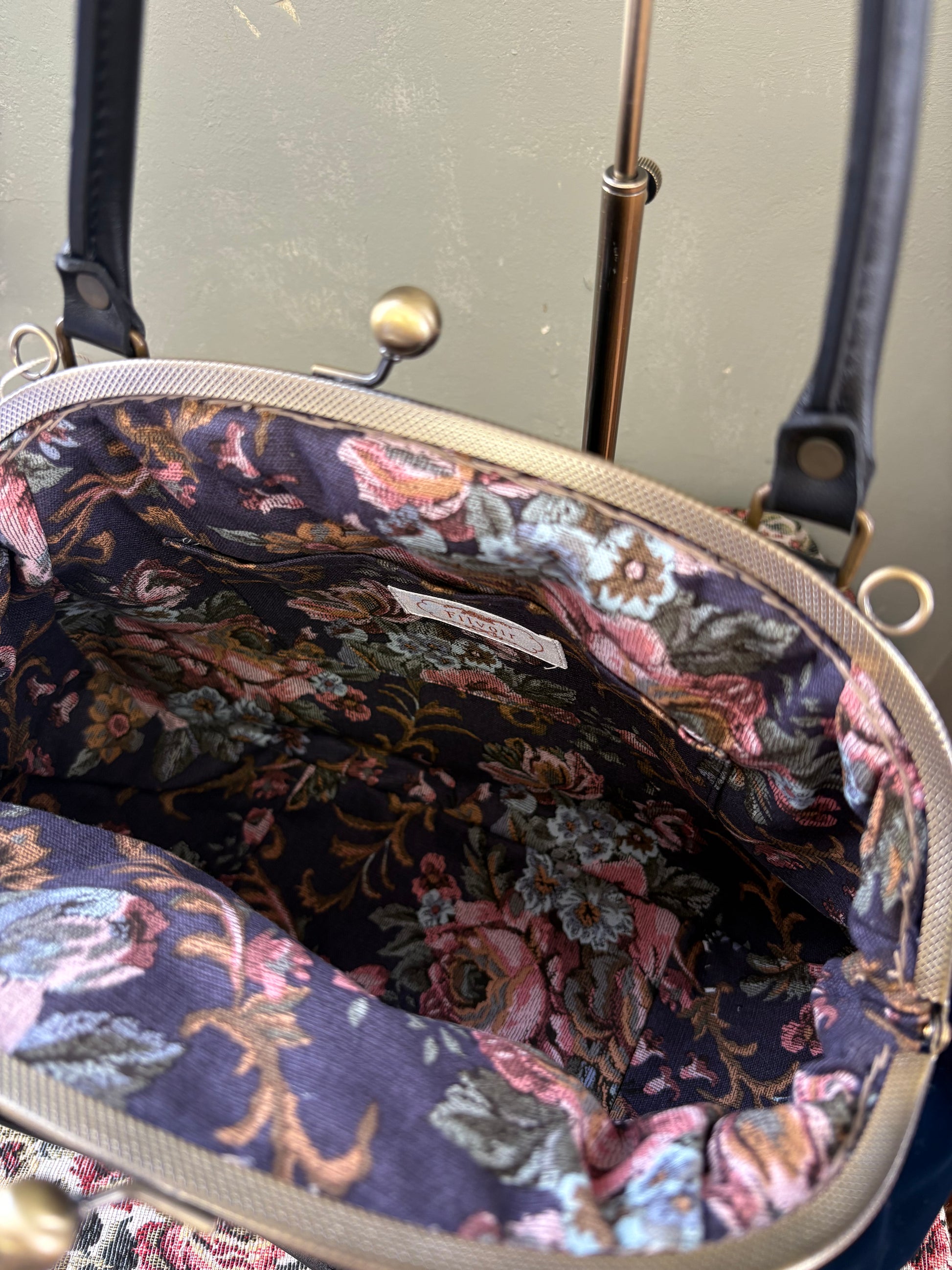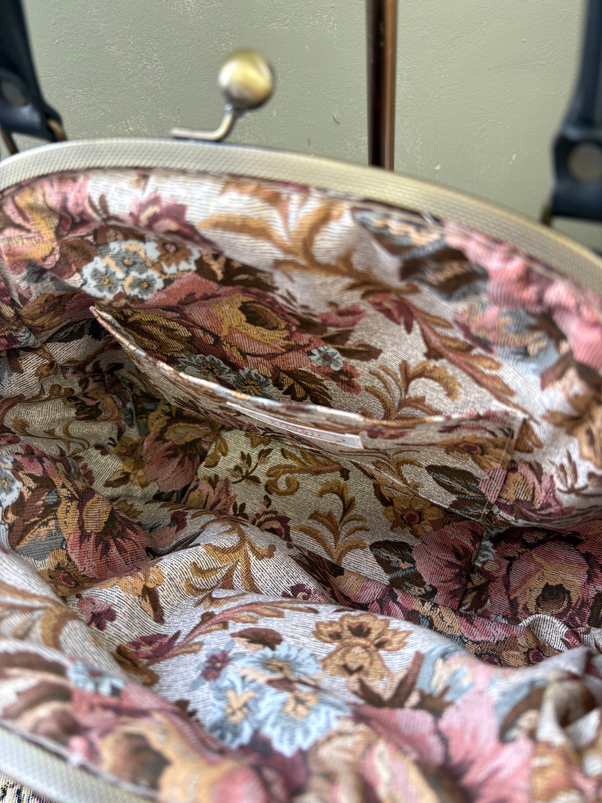 内側はバッグを開ける度に心弾む華やかな花柄です。